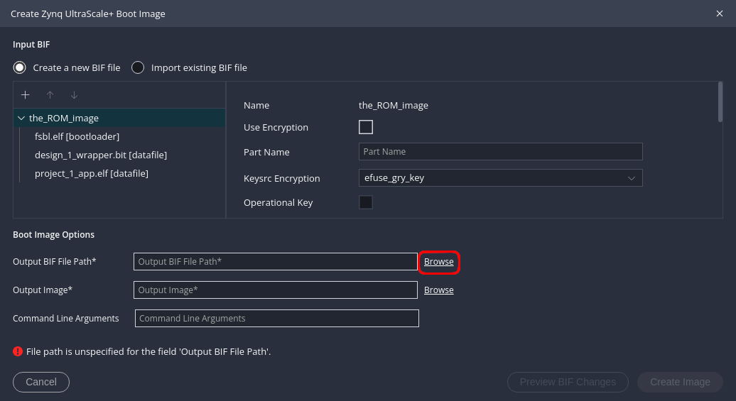 Click "Boot Image Options: Output BIF File Path: Browse" and select the directory where you want to save the Boot Image.